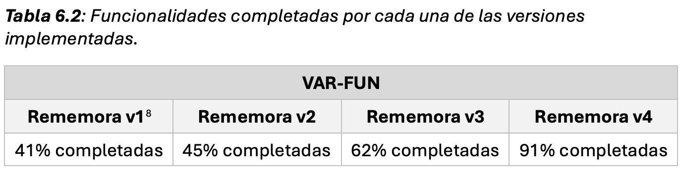 Como se puede ver en la tabla y en la gráfica, cada una de las versiones creadas en las que interviene la IAG ha mejorado el número de funcionalidades completadas.