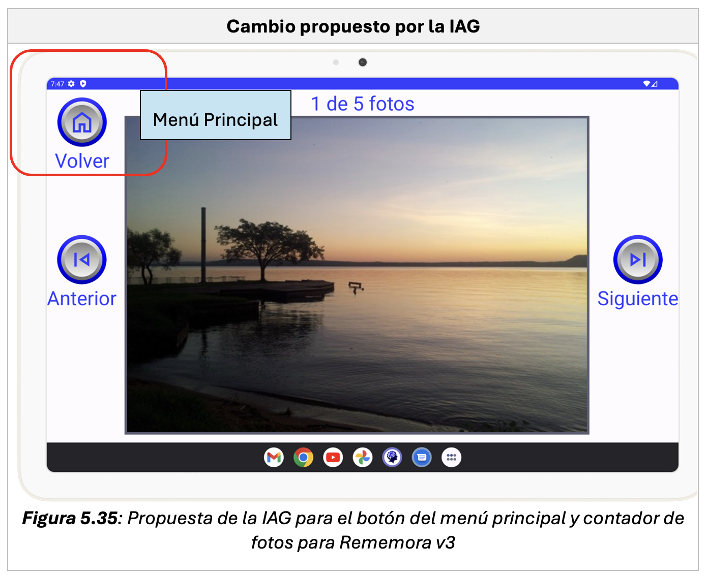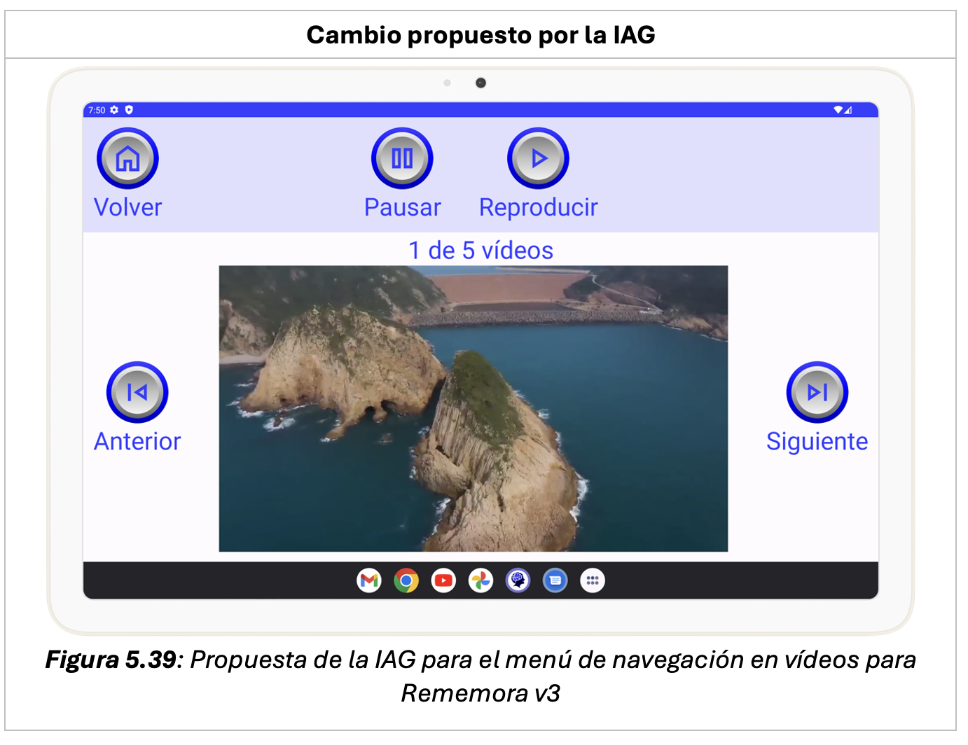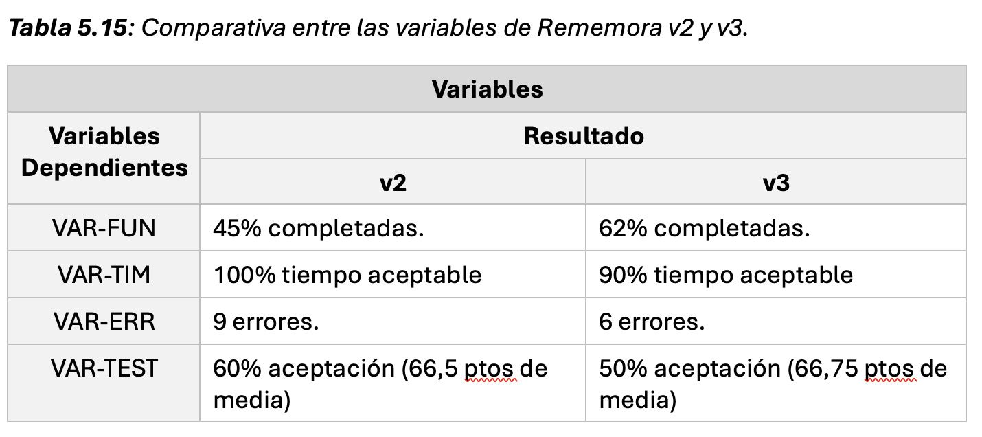 Tras las pruebas realizadas con Rememora v2 y el análisis de datos posterior, se han detectado problemas de usabilidad que volveremos a intentar resolver con la IAG. Se identifican todos los problemas, se los comunicamos a la IAG e implementamos la propuesta realizada. Todas estas propuestas implementadas sobre Rememora generan una nueva versión, la v3.