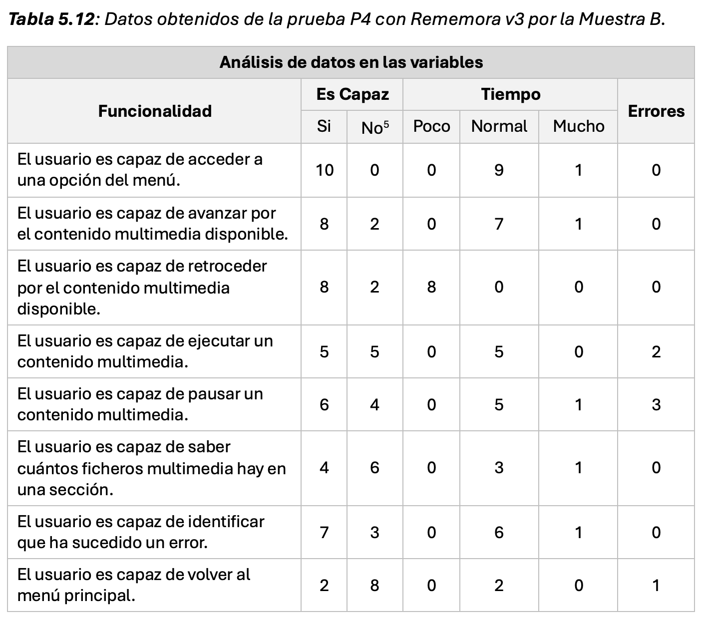 Tras el análisis de la prueba P4 entre Rememora v2 y v3 con la Muestra B se sacan las siguientes conclusiones: