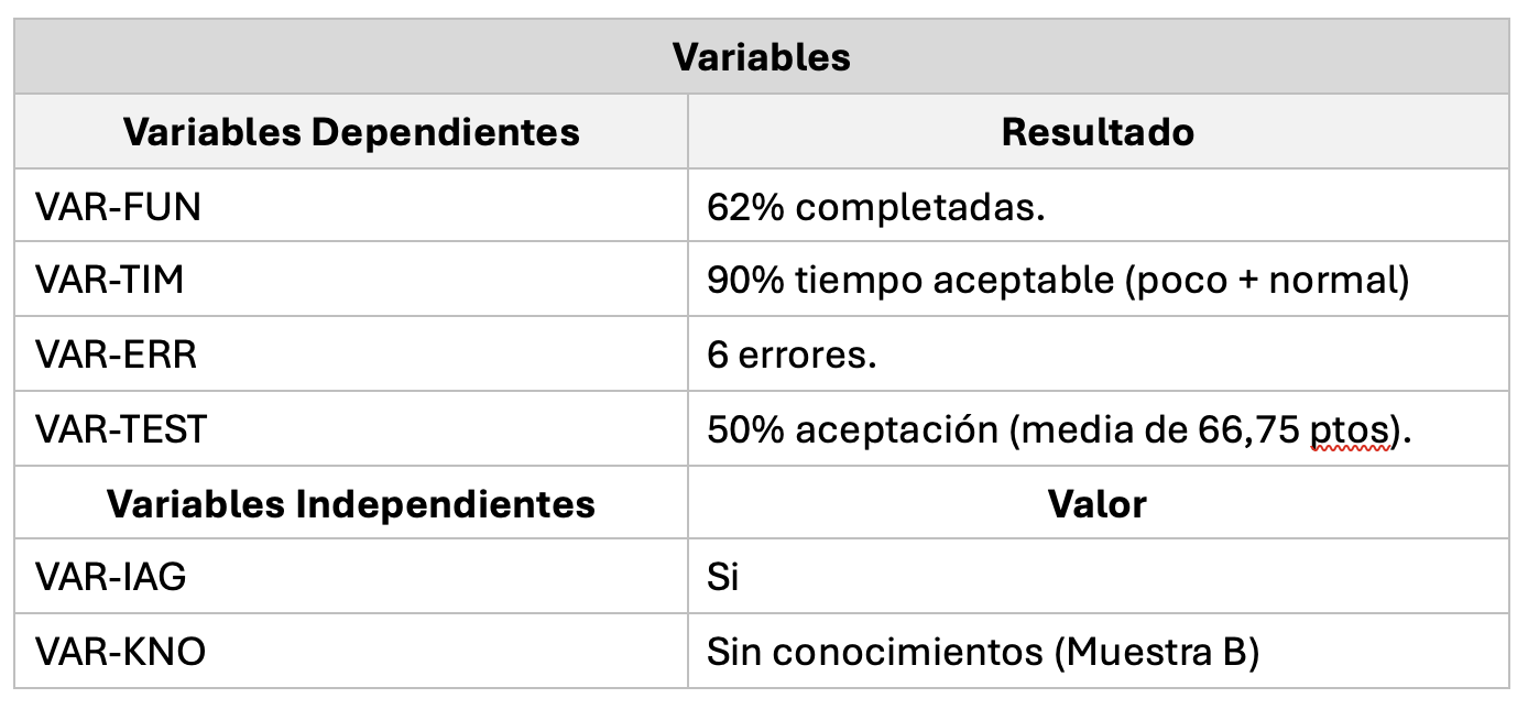 - El cuestionario de usabilidad evalúa con un 10% menos de usuarios que la califican con una usabilidad positiva pero aumenta ligeramente los puntos de usabilidad.