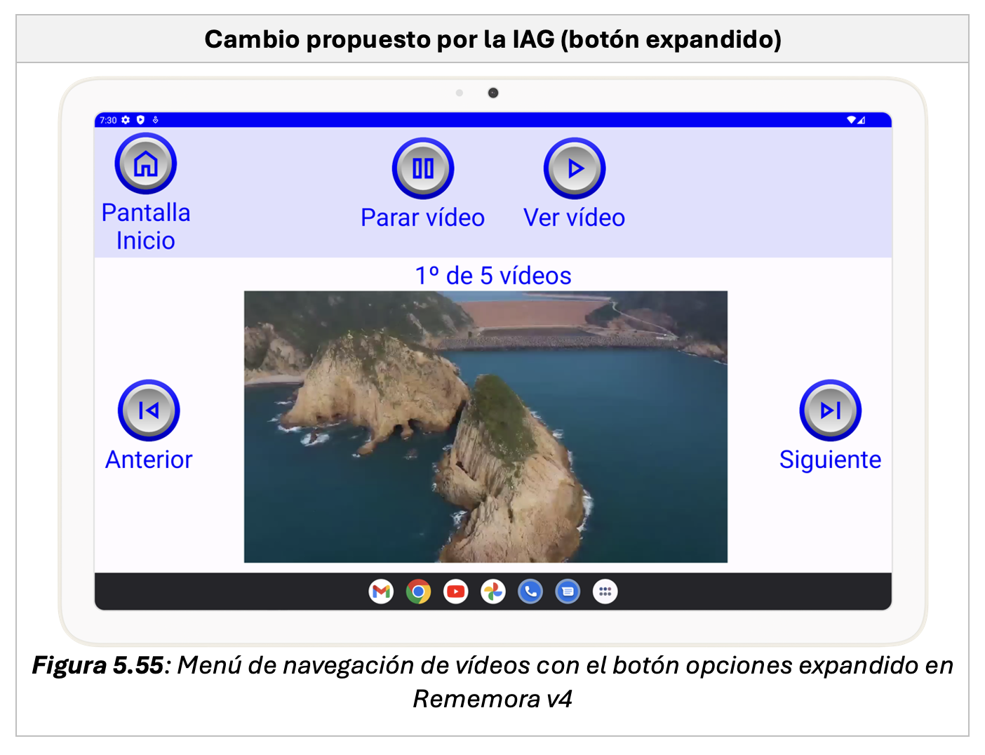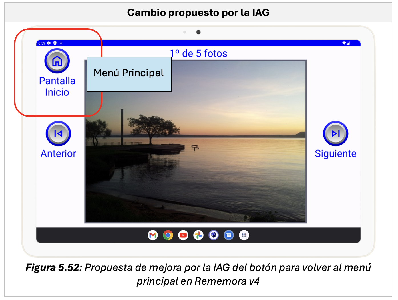 Tras las pruebas realizadas con Rememora v3 y el análisis de datos posterior, se han detectado problemas de usabilidad que volveremos a intentar resolver con la IAG. Se identifican todos los problemas, se los comunicamos a la IAG e implementamos la propuesta realizada. Todas estas propuestas implementadas sobre Rememora generan una nueva versión, la v4. Se realiza una nueva prueba con los usuarios (P5).