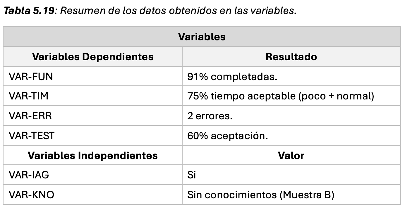 - El 15% de las funcionalidades realizadas han sido completadas en un tiempo inferior a 10 segundos (poco).